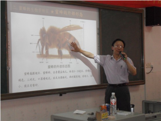 五月二十四日下午,青菱小学的多媒体教室里人头攒动。原来学校请来了洪山区科普展教联盟成员单位,中国养蜂学会常务理事、中国蜜蜂文化研究会副会长、华中农业大学蜜蜂文化馆馆长张新军教授,正在为青菱小学四五年的学生做蜜蜂的科普知识讲座。