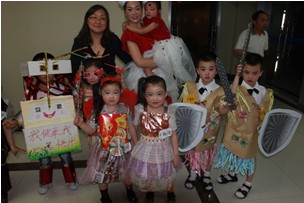 本次活动以绿色环保服装设计为主题,社区志愿者们利用废旧物品,如报纸、旧衣服、塑料袋、纸杯等材料,积极动脑,用心创作,充分发挥自己的想象力。时装设计美轮美奂,报纸成了花裙子,五颜六色的吸管成了头饰,硬纸壳成了大侠的披风。作品完成后,孩子们踩着欢快的音乐亲自展示自己的作品,虽然没有宽广的T台,也不是专业的模特,但一样有高超的表演水平,从志愿者到孩子们个个神采奕奕,星光四射。