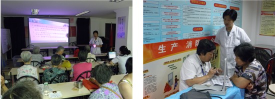主讲医师围绕“老年人与心脑血管疾病”的主题,细致地讲解了心脑血管疾病的成因、危害,以及预防知识,教授了老年人简单易学的健康操,并为在场的所有老年人免费测量血压及进行了讲课咨询。老年朋友们专心致志的听着讲课,时不时认真的做着笔记,并在主讲医师的带领下兴致勃勃的学会了这套健身操