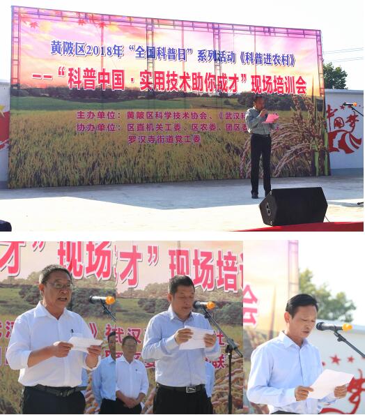 黄陂区科协党组成员、副主席雷一鸣、区直机关工委书记熊克彪,武汉科技报社社长、总编辑陈海涛、罗汉寺街道党工委书记张建民、区妇联副主席兰萍、团区委副书记胡震宇、区农委总农艺师盛全学、罗汉街党工委副书记、街科协主席汤全盛等出席活动现场,与现场400多名村民共享科普大餐。