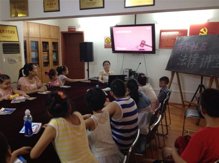 2013年8月1日上午9点,万兴社区举办“法律宣传进社区”活动,邀请社区青少年参加。由社区律师陈文讲授的“法律宣传进社区”讲座。