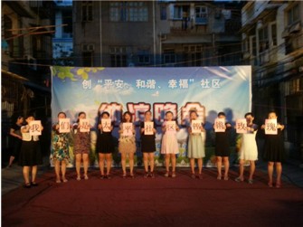 2013年8月1日晚8点,晚会伴随着优美的开场舞蹈拉开帷幕。本次活动吸引了几百名居民的热情参与,不仅有舞蹈、广场舞、独唱、合唱等,还有居民自编自演的小品,整个晚会歌声、笑声、掌声不断,最后社区全体工作者合唱一曲“铿锵玫瑰”将整个晚会演出推向高潮。