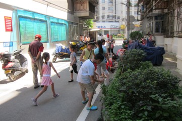 10时整,大家在黄陵苑门口集合,每人手拿一双卫生筷、一个塑料袋和社区工作人员一起,共同清理了黄陵苑多个小花坛、健身路径里的塑料袋、烟盒、塑料碗、杯等废弃物。孩子们你一下,我一下,刚才还满是纸屑、烟盒……的花坛,被孩子们又重新打扮靓丽了!周围的居民边看边“啧啧”夸奖着孩子们。尽管天气炎热,但孩子们没有一个叫苦叫累,共同把小区花坛整理得焕然一新。