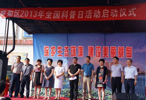 正值金风送爽、丹桂飘香之时,由蔡甸区科协、区教育局、区环保局联合举办的蔡甸区2013年全国科普日活动启动仪式在美丽的知音湖畔——蔡甸中百仓储广场隆重举行。17日上午8点半,中百仓储广场锣鼓齐鸣、热闹非凡,广场中央的舞台上方醒目地张贴着“蔡甸区2013年全国科普日活动启动仪式”几个大字。市科协副主席陈光勇,区委副书记、区长彭巧娣,区委常委、宣传部长郭笑撰、区人大副主任朱义侠、副区级领导黄厚光等市区领导出席了启动仪式。区科协、区环保局、区教育局、区科技局、区经信局等二十余个部门相关领导和科技人员、科普工作者、环保志愿者参加了活动。启动仪式由区政府办公室主任张卫华主持,区委常委、宣传部长郭笑撰致辞,长江大学毛宁波教授代表全区广大科技工作者宣读了“保护生态环境、建设美丽蔡甸”的倡议书。区委副书记、区长彭巧娣宣布启动仪式开始。