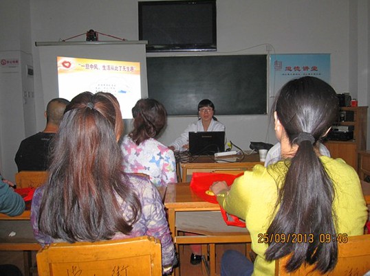 2013年9月25日上午,劳动社区组织社区居民、党员和社区工作人员邀请武汉爱普医院神经内科主任曾晓梅进行疾病预防和控制的讲座,并观看《关于“预防高血压、脑中风”科普知识》的电教片,参加者有30余人。