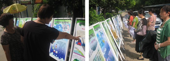 宣传展板中“生态文明”提出的背景和历程,历届国家领导人、历届党代会,对生态环境问题的不断深入探索和研究,最终形成现今的生态文明概念,特别是“十八大”报告中大篇幅对“大力推进生态文明建设”提出明确要求。展板中案例和对比贯穿其中,使大家深刻体会到珍爱环境、保护生态环境的迫切性。