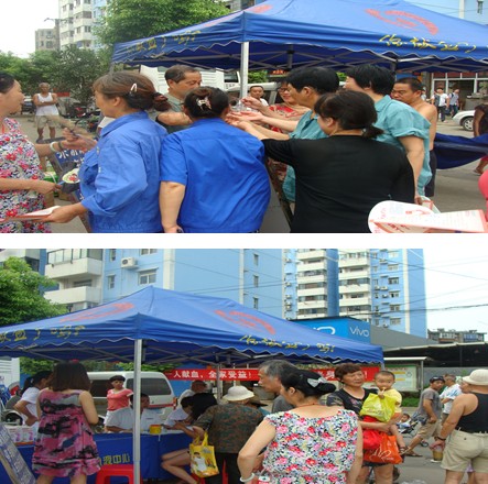 积极宣传无偿献血相关知识,促进公民科学献血一直是市血液中心的一项重要工作。9月16日,武汉市血液中心、张家湾街道办事处、建材社区科普工作站联合举办了2013年“全国科普日”社区科普益民行动---无偿献血知识宣传。 在工商学院路青润家园门口市血液中心的工作人员、社区科普志愿者等一起为社区居民、辖区院校学生提供免费义诊、验血、无偿献血科普知识宣传等活动。 此次科普宣传活动现场发放输血、无偿献血知识手册100余份,这种活动形式也受到了在场居民的欢迎和肯定,不少学生和居民了解了科学鲜血知识后义务鲜血。