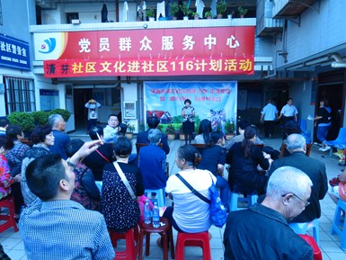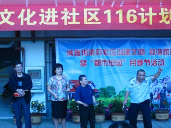 为庆祝建国64周年,宣传科普知识,提高居民素质,9月30日上午9点,江汉区满春街清芬社区举办了一场生动活泼、内容丰富多彩的《“都市田园”月季花节》文艺汇演。