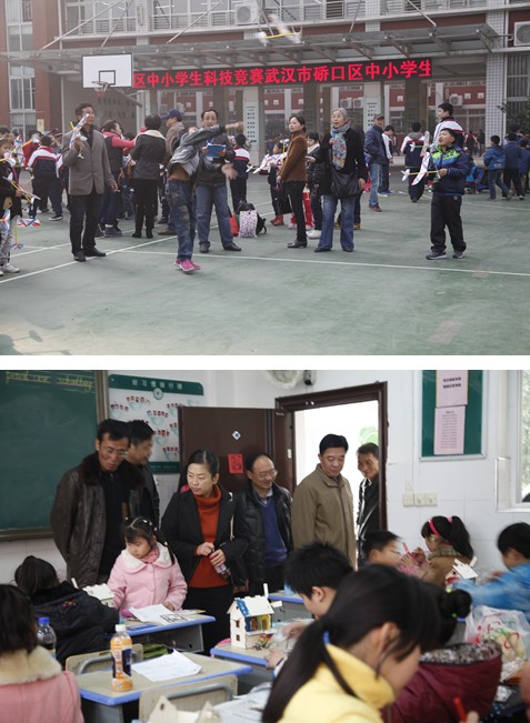 12月7日上午,硚口区科协、教育局联合在韩家墩小学,举办了2013年中小学生空模、车模、建模及科技小制作竞赛。现场不仅有:“轻骑士”橡筋动力模型飞机、“美嘉欣”遥控飞行器等航空模型项目,新型四驱车现场拼装赛、四驱车竞速赛等车模模型项目,也有江汉关、城市环线立交、“缤纷童年”涂装木屋等建筑模型和双足步行者、丙烯油画、七巧板、科幻画送作品等科技小制作项目。区青少年科技电教站承办组织辖区近600名中小学生参与了活动,活动现场气氛热烈,学生们一个个在欢乐中体会科学的乐趣,区教育局、科协的相关领导也前来观摩了此次竞赛,为参赛同学们加油喝彩。