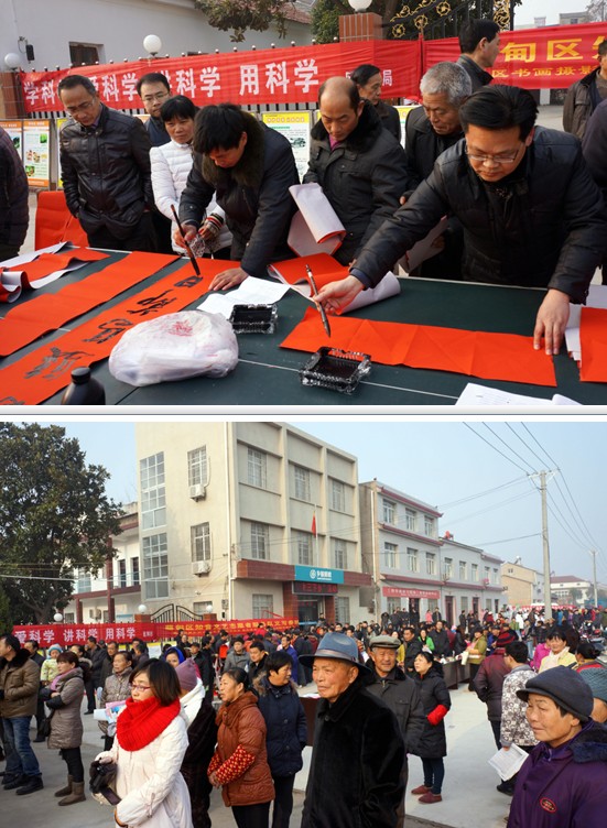 1月17日,一台精彩的文艺演出在蔡甸区成功管委会政府所在地拉开了蔡甸区“科技、文化、卫生三下乡”活动的序幕。这是由区委宣传部、区科技局、区科协、区文体局、区卫生局、区农业局、区药监局等十多个部门和乡镇共同组织参与的三下乡宣传活动。在科普宣传展台前,科普志愿者向现场群众发放科普宣传资料、挂图、推广的新种子,医药及用品等,并向群众讲解一些科学知识,解答群众提出的问题;在书画桌前,书法爱好者为前来参加活动的部分群众书写对联;在文艺演出现场,传来阵阵笑声和热烈的掌声。活动现场,人头攒动,气氛热烈,反响良好。群众称赞说:科技、文化、卫生三下乡给我们送来了温暖。