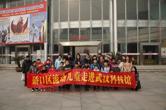 在农历甲午年新春佳节即将到来之际,为了加强流动儿童思想道德建设,用科技启迪思想,用知识激发创新创造,促进流动花朵同沐蓝天,共享城市成果,1月26日上午,硚口区科协、妇联联合组织开展了“流动儿童走进武汉科技馆”活动,来自韩家墩、古田、宗关、汉水桥等四街道40余名,或是因春节期间从事服务不能返乡外来务工的、或是到异地工作春节期间返汉探亲的流动家长和儿童参加了活动。武汉市科技馆耳目一新的声、光、电等科普互动、知识展览和精彩的4D科教电影让参与者大饱眼福、流连忘返。