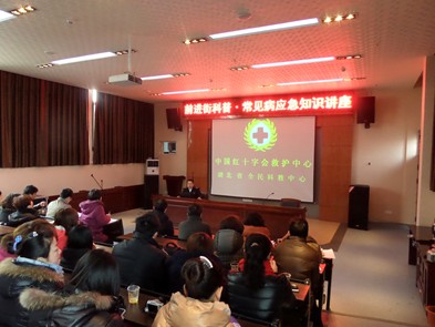 为提高全民健康教育、预防常见病及“办公族”职业病的发生与应急处理,2月19日,江汉区前进街在“大家讲吧”活动中心举办了一场《常见病的预防与急救科普知识讲座》,特邀请了湖北省全民科教中心具有国家应急救援培训资格的专业资深教员郭瑞峰主任进行宣讲。街机关干部及社区工作者60余人参加了讲座。