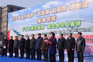 本次活动以“千名专家走基层 联企助农促春耕”为主题,全市千名干部为辖区农民 “送政策、送科技、送岗位”,参加的单位开展了送资金、送农资、送项目、送科普书籍、送信息、送就业岗位活动。市科协副主席杨军代表市科协现场捐赠了资金2万元、农资1万元,并与蔡甸区侏儒街千湖村签订了科普助推行动计划项目协议。