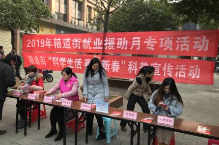 1月21日上午, 粮道街以“科学生活,喜迎新春”为主题,在胭脂桂苑开展了科普宣传活动,就科普知识、食品安全等进行了宣传。