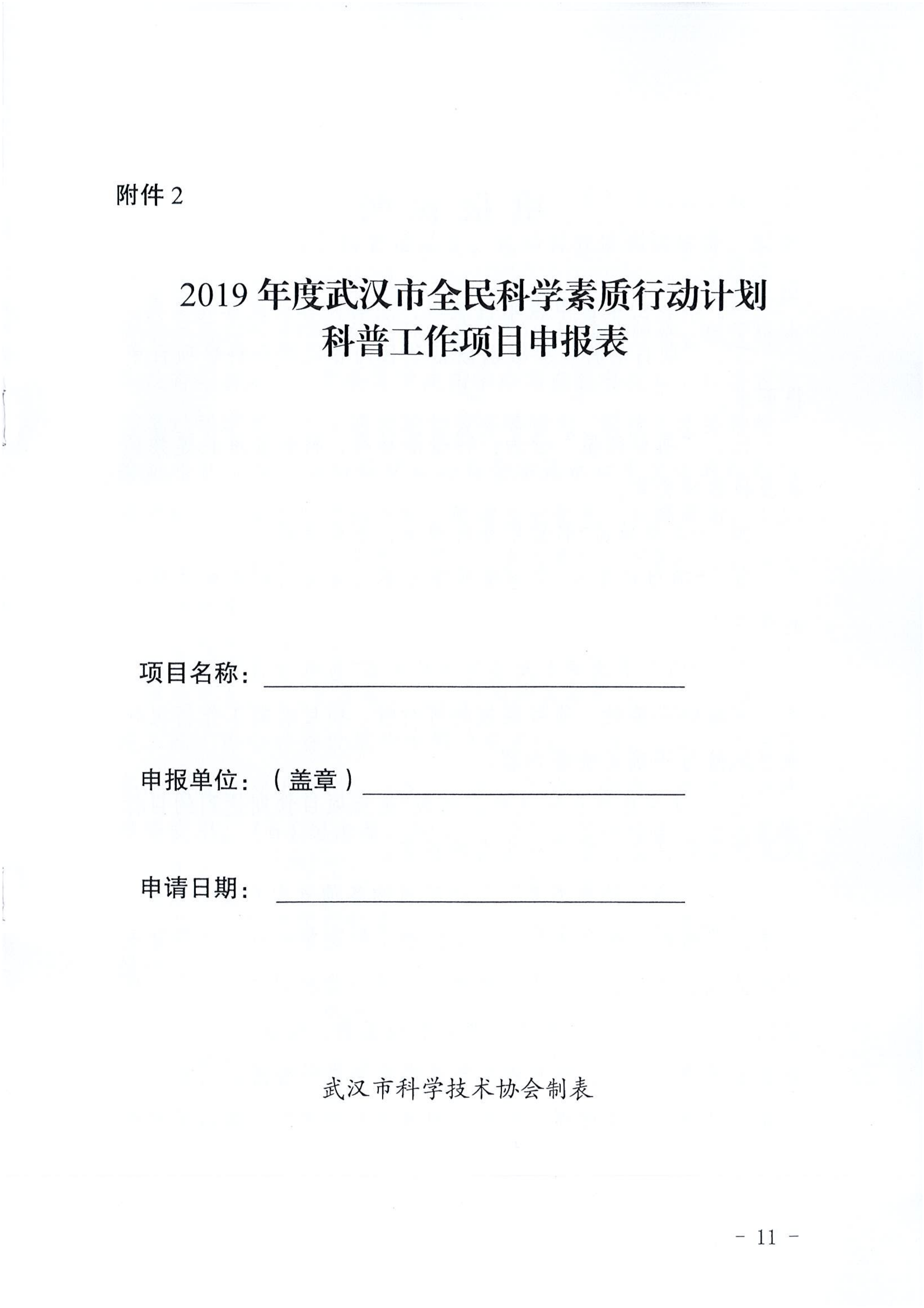 附件2、2019年度武汉市全民科学素质行动计划科普工作项目申报表