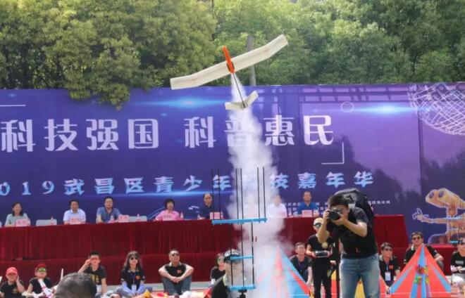开幕式上,武昌区教育局航模社团的师生们带来了火箭助推遥控滑翔机、遥控扑翼机、摇滚风轮、充气双发大飞机等,为大家上演了一场精彩的航模飞行表演。