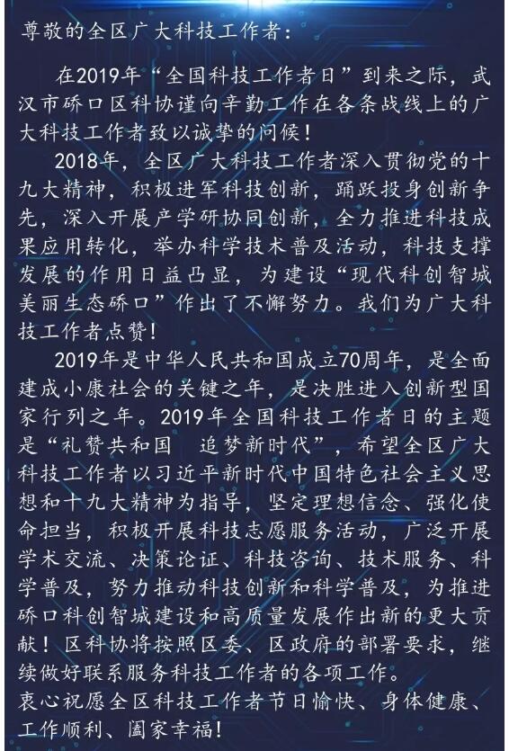 [硚口区]硚口区科学技术协会致全区科技工作者的一封信