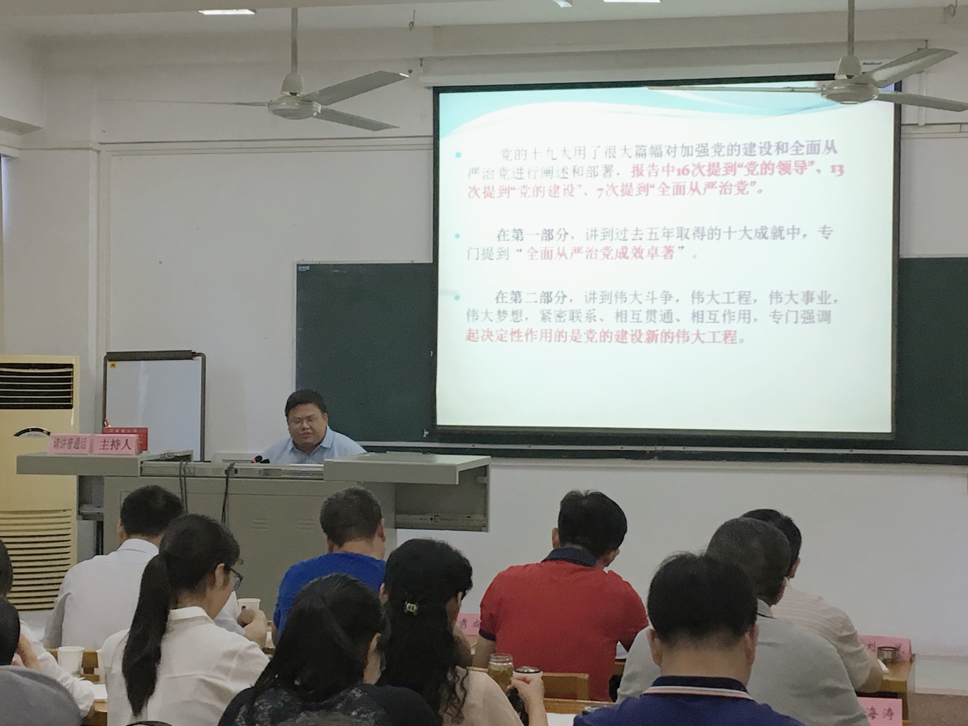 开班仪式后,市委宣讲团成员、市委党校哲学教研部主任明庭权教授以“习近平新时代全面从严治党战略思想研究”为题,为大家上了生动的第一课。