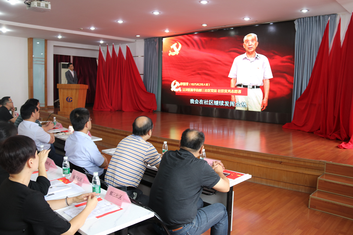 现场播放了各单位优秀党员回顾入党初心的视频短片。