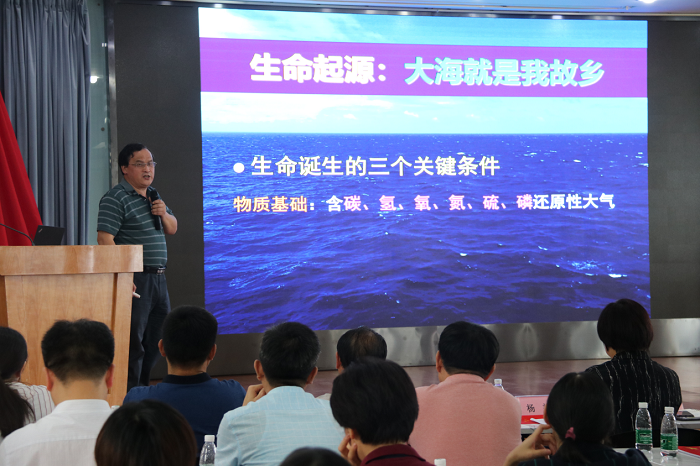 中国地质大学图书馆馆长徐世球教授作了题为《人与地球》的科普知识讲座,徐教授从“认识地球”、“感恩大地”、“敬畏自然”、“关爱家园”等四个方面进行深入细致的分析与介绍。他用形象直观的画面、幽默风趣的语言,给大家留下了极其深刻印象,赢得了党员们阵阵笑声和掌声。