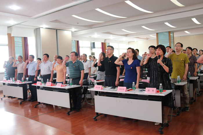 在区科协党组书记、主席杨艳的带领下,全体党员集体宣誓。