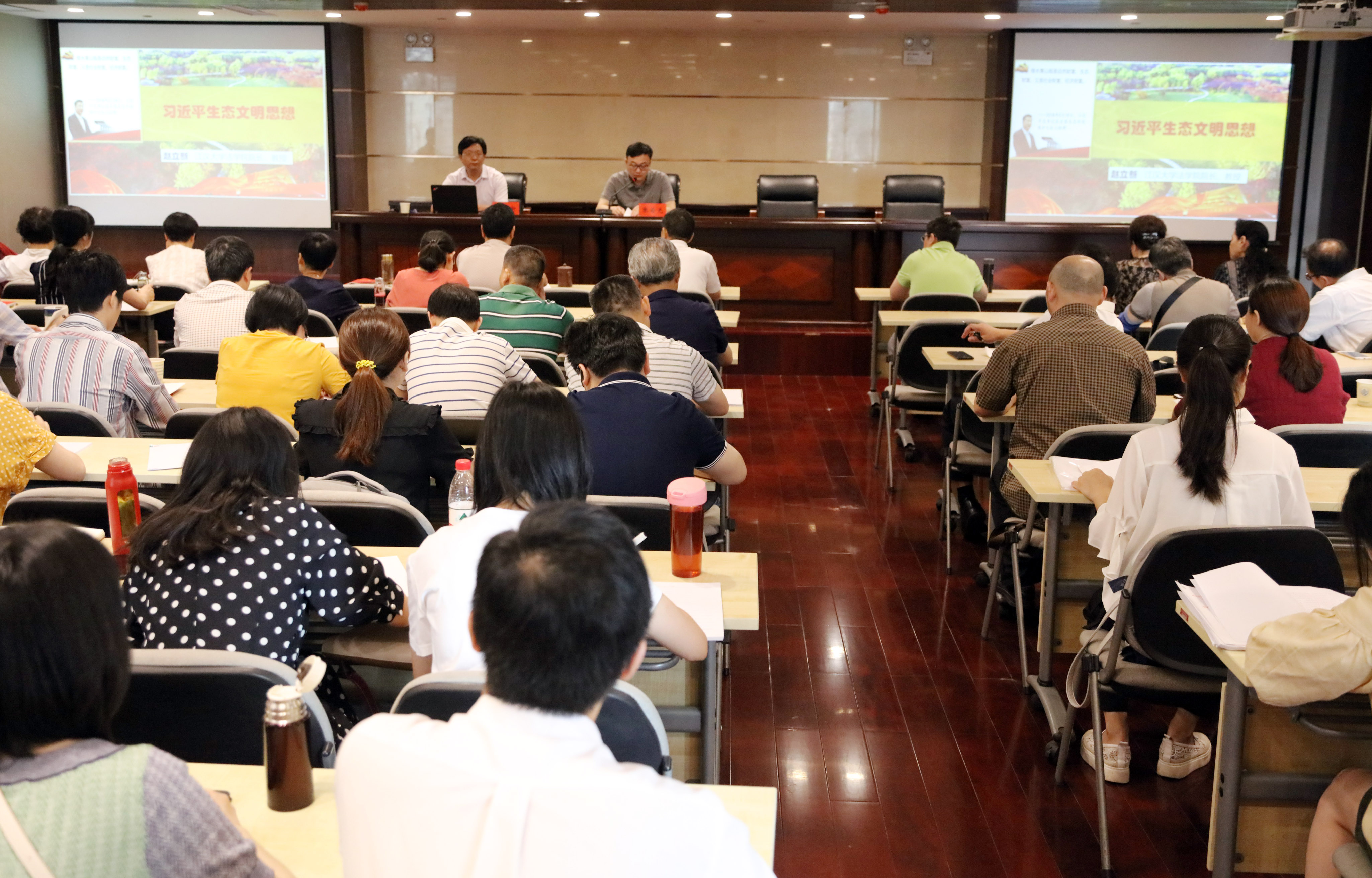 市科协网讯 6月26日上午,市科协举办了 “不忘初心、牢记使命”主题教育读书班第一场专题辅导,邀请了市委讲师团成员、江汉大学法学院院长赵立新教授作《习近平生态文明思想引领美丽中国建设》辅导报告。