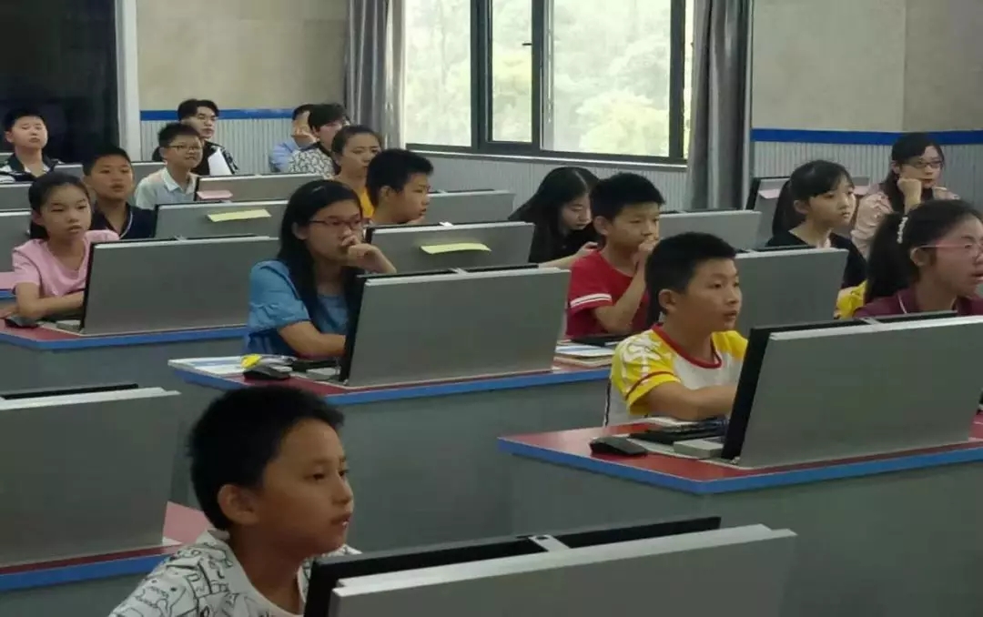 为了让大家了解国内外创客活动,张老师向大家演示了自制三轮车书法、智能垃圾桶等创客作品的影像,同学们看得津津有味。