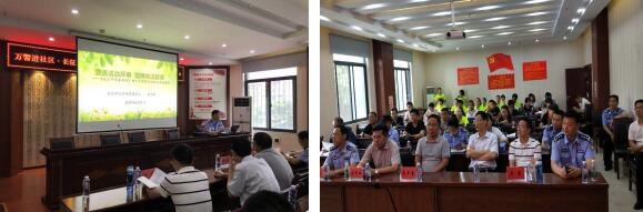 接下来由武汉市公安局禁毒支队法制大队辅导员田伟民同志给参加活动的人员进行《营造法制环境,坚持依法禁毒》专题条例解说。他结合色彩鲜明的PPT,与大家一起回顾了《武汉市禁毒条例》的制定情况,并用通俗易懂的语言对条例进行了解读。期间还穿插互动提问环节,在场人员均表现积极。