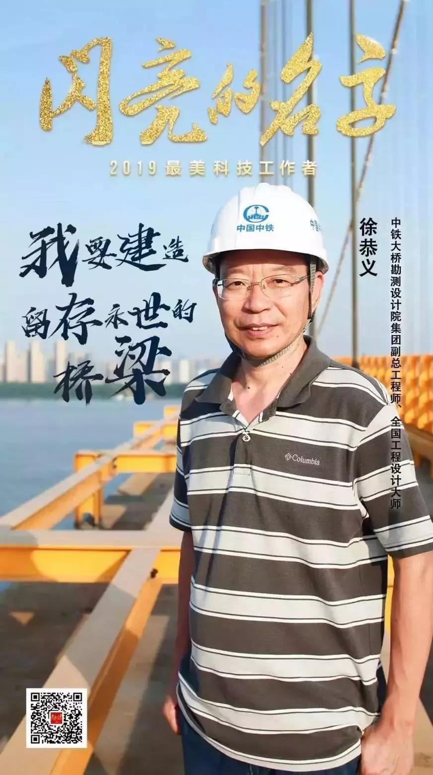 不忘初心,开拓创新现代悬索桥技术;砥砺前行,开启我国双层公路桥技术大门;矢志不渝,助推中国桥梁设计走向新高度。在“一桥飞架南北,天堑变通途”的伟大诗篇激励下,徐恭义潜心钻研、开拓创新,为实现中国桥梁强国做出突出贡献!