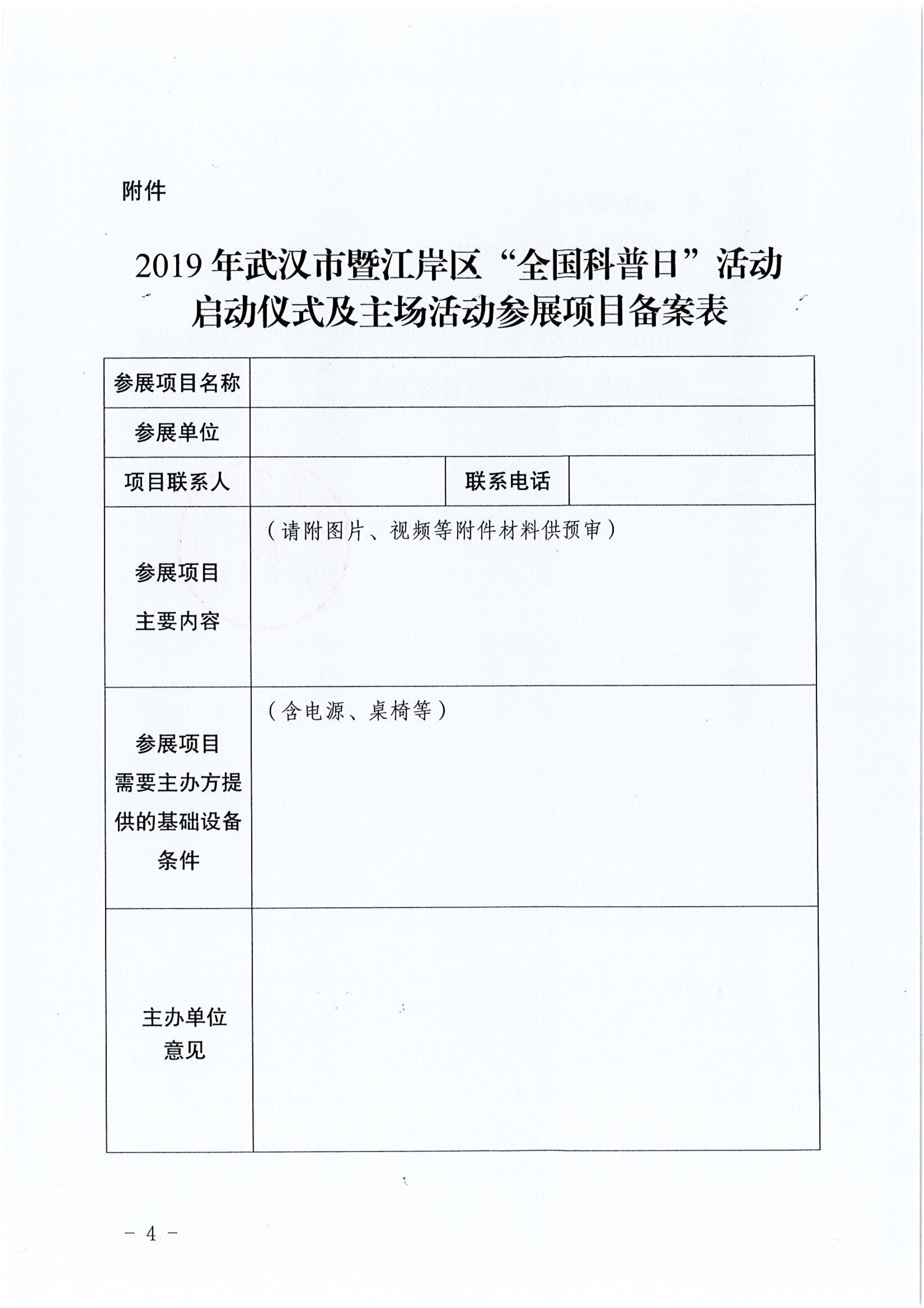 关于征集2019年武汉市暨江岸区“全国科普日”活动启动仪式及主场活动现场展示项目的通知