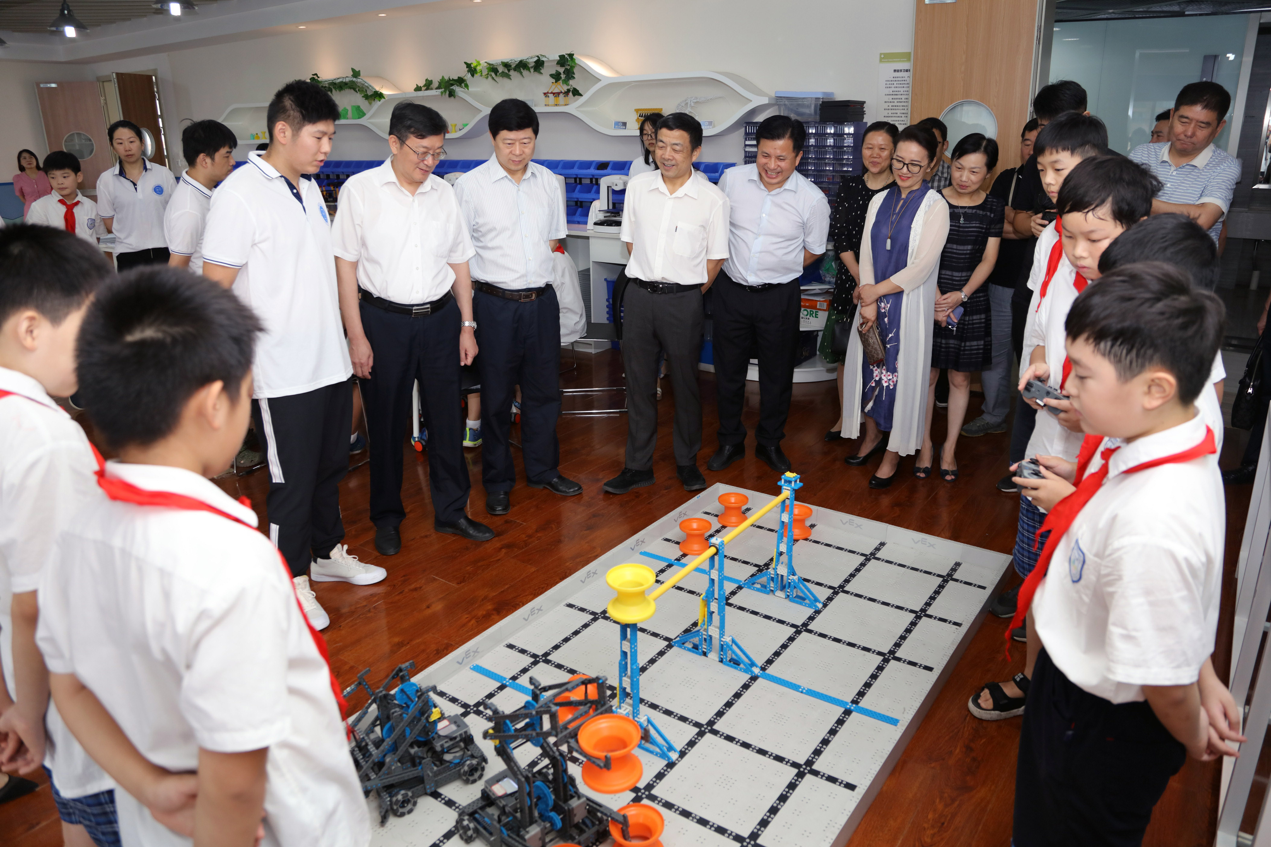 9月3日上午,督察组一行赴江岸区,实地查看科普特色学校育才小学青少年科学素质建设情况。叶贤林对该校的科学素质建设工作取得的优异成绩表示了高度肯定。