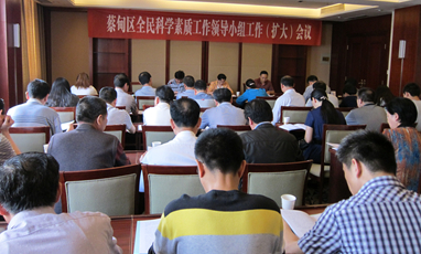 为落实市全民科学素质纲要工作会议精神,进一步推进《科学素质纲要》的实施,蔡甸区全民科学素质工作领导小组工作(扩大)会议,于5月22日上午9时在区莲花湖宾馆四楼会议室召开。出席会议的有:区全民科学素质领导小组组长、区政府副区长张丽筠、区政府办公室副主任曾建新、区全民科学素质工作领导小组各成员单位的分管领导及联络员。
