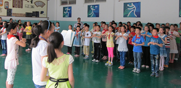 在校内另一个场地,一堂素质教育训练课—歌咏表演正在学生中进行,生动活跃现场给学生们带来了欢声笑语。