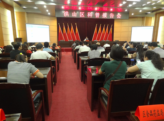 5月29日,由洪山区全民科学素质工作领导小组办公室、区委宣传部、区科协、区食品药品监督局联合主办的2014年科普报告会在区政府二号会议厅举行,区全民科学素质工作领导小组成员单位分管领导和联络员、区食品药品监督局全体干部、各街乡分管科协工作领导、科协秘书长及社区科普员等200余人参加了科普报告会。