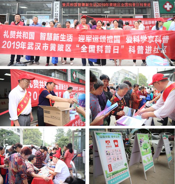 活动紧紧围绕“礼赞共和国,智慧新生活——迎军运颂祖国 爱科学享科普”的主题,坚持“贴近生活、贴近实际、贴近群众”的原则,开展丰富多彩、形式多样、寓教于乐的科普活动:一是通过悬挂横幅标语,设置科普知识咨询台,展出科普知识展板,发放宣传资料的形式向社区居民宣传军运会、垃圾分类、科技创新、食品安全、节能减排及健康生活等内容。二是采取有奖问答的方式,向社区居民赠送清凉油、风油精、花露水。三是免费发放印有“黄陂科普”微信二维码的卡包和环保购物袋等生活实用物品。四是提供免费视力检测、眼睛健康筛查及咨询服务,让社区居民了解自己眼睛的健康状况,获得一些常见眼疾防治知识。