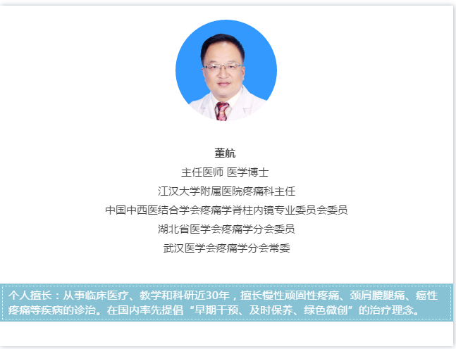 董 航 武汉医学会疼痛学分会常委、江汉大学附属医院疼痛科主任
