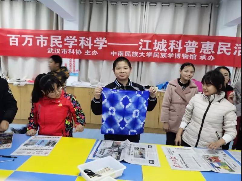 11月18日下午,中南民族大学民族学博物馆科普小分队在洪山区张家湾中学开展一场生动的扎染技艺科普活动,活动圆满成功,获得校方领导、老师和同学们的一致好评。
