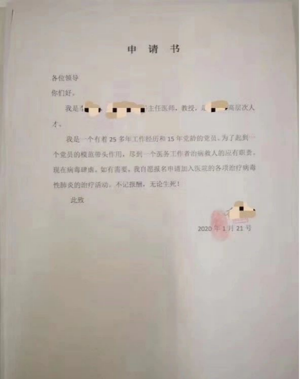 1月21日,一份华科同济医院第二批志愿报名的申请书冲上了热搜,申请书中写到:
