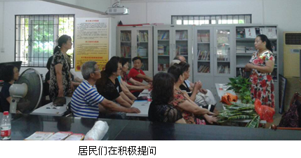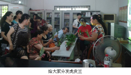 上午9:30 ,活动正式开始,来自于植物园的“花博士”李俊皞老师首先用投影仪向大家阐述了近年来导致空气恶化的祸首“雾霾”展开了分析和讲解,“雾霾是什么?它从哪里来?是怎样产生的?如何治理雾霾?我们生活中怎样做才能让空气更清新?环境更好?”目前,我国的雾霾污染已成为主要的环境问题之一,包括武汉在内的广大地区都受到影响,雾霾所含的PM2.5颗粒对人类健康危害巨大。李老师讲解了如何利用特定的植物改善因雾霾天气,居民减少室内外空气对流时,室内空气质量下降的家居环境。她向居民们推荐了能改善室内空气的三种植物,分别介绍了散尾葵、虎尾兰、绿萝的家庭种养方法以及这三种植物各自的特点,让大家认识到身边小植物的大功效。讲座完毕,李老师向居民赠送了30余盆虎尾兰和植物花种子,并与居民们积极互动,相互交流了养花经验。