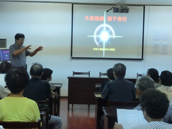 会上院长就老年人普遍容易得的一些疾病开题,重点讲解了脂肪肝、高脂血症、肝囊肿、肾囊肿、颈椎病、腰椎间盘突出症、高血压、糖尿病、胆囊息肉、胆管胆囊结石等常见疾病。随后,院长从病因的形成、治疗以及预防三个方面做了详细讲解,宣传健康理念及科学的生活方式,并根据居民的个人健康史、生活方式和相关检查评估其生理状况,排除危险因素,治疗疾病,从而帮助个人改善非健康的生活方式,有效控制疾病。此次活动获得大家的广泛好评!