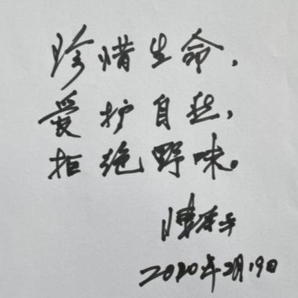 采访最后,陈孝平欣然为武汉科技报提字,呼吁全社会:“珍惜生命,爱护自然,拒绝野味。”