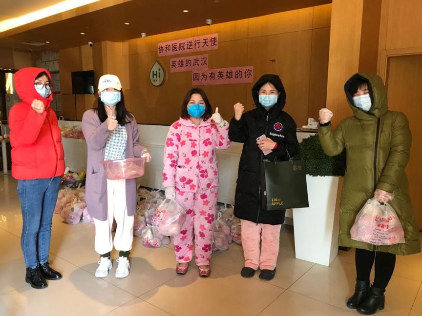 20日上午,经江汉区商务局协调,领取到由山西万荣、上海凯乐输液器厂等爱心企业捐赠的苹果100箱、丑橘60箱、鸡蛋81箱、酱菜24盒,当天下午,组织科协干部进行有序分装分发,累计分发200余份。
