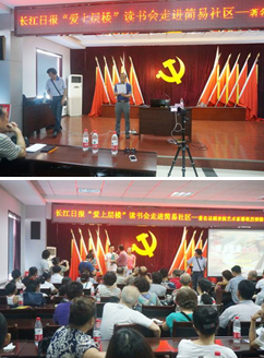 “小时候,乡愁是一枚小小的邮票,我在这头,母亲在那头……”,“它孤独地站在那里,显得寂寞而又倔强,它的弯曲的身体,留下了风的形状,它似乎即将倾跌进深谷里,却又像是要展翅飞翔……”7月26日下午3点,长江日报“爱上层楼”读书会走进硚口区韩家墩街简易社区,来自10个社区近130名读书爱好者闻讯赶来参加了活动,很多书友慕名从外地赶来,就是为了能亲自看一眼鄢继烈老师,亲身感受到大师的风范。街工委书记邹慧来到会致辞并参加了活动。