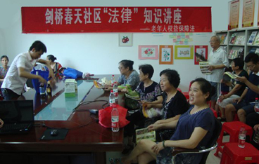 随着生活水平提高、寿命延长,社会人口老龄化也日趋严重,尊老、敬老、养老观念越来越淡漠,侵犯老年人合法权益的事件时有发生。为进一步增强老年人维护合法权益的意识,7月2日下午,关山街剑桥春天社区联合社区志愿者秦律师给社区老年人上了一堂针对性很强的法律知识课《老年人权益保障法》,社区的30余位老年居民前来听讲,发放宣传资料30余份。