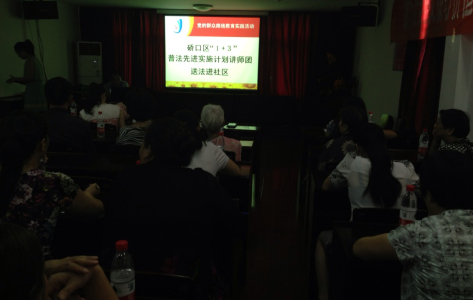 为加强辖区企业及社区居民法律意识,提高群众知法、守法、用法的自觉程度,促进法治街道建设,8月8日下午,硚口区韩家墩街四新社区开展了硚口区“1+3”普法先进实施计划讲师团送法进社区的讲座,应邀硚口区党校周浩主任讲解《社会保障法》 、硚口区房产局周律师讲解《物业管理法》 、硚口区工商局董明哲讲解《消费者权益保护法》 硚口区计生委张杰科长讲解生育二孩的有关政策。辖区企业代表、街机关干部及社区居民60余人参加了讲座。