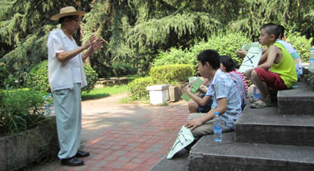 2014年8月1日上午9:00,首义路街千家街社区开展八一·青少年传统革命教育活动。活动特别邀请社区老革命郭万麟与社区12名青少年一起踏着热浪步行前往中南财经政法大学寻找革命先辈陈毅纪念碑。