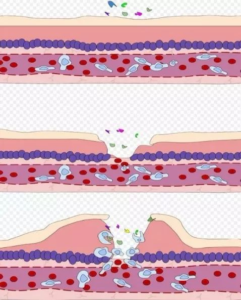 血管扩张,通透性增加,白细胞在患处聚集,这些都是保护性的炎症反应。