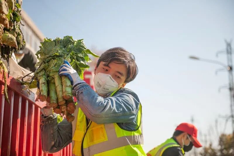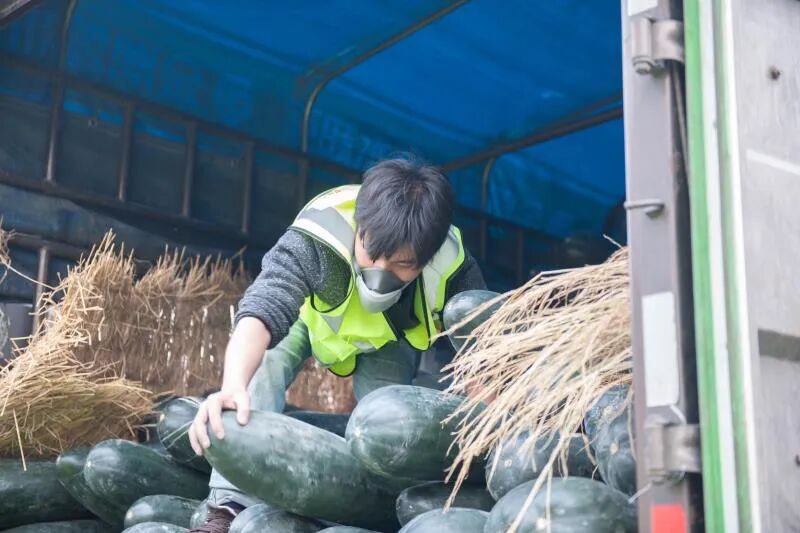 一个莹绿色身影率先爬上装满冬瓜的卡车,小心翼翼地转送冬瓜给车下的志愿者。“站在卡车上转送货物比车下接货的,要吃力很多,何况这么重的冬瓜,他挺能吃苦的。”90后志愿者华雨辰口中的他,就是余靖,一个从大年三十就奋斗在武汉抗疫一线的志愿者。