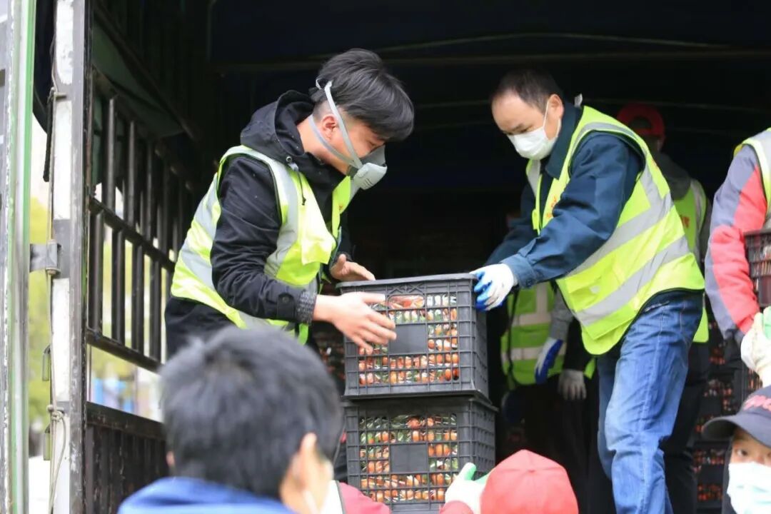 3月1日下午14时许,武汉市青山区钢城第十小学操场,六辆装满蔬菜的卡车陆续驶入:两车冬瓜、一车砂糖橘、一车包菜、一车莴苣和一车南瓜,近50名志愿者开始卸货。