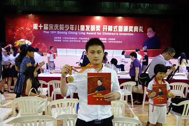 2014年8月17——19日第十届宋庆龄少年儿童发明奖评选活动在广州番禺祈福英语实验学校举行。来自全国各地的255件发明作品入围现场终评。终评通过现场答辩评出金奖15名、银奖60名、铜奖180名。电子信息学校的学生胡伟入围终评,并获得金奖(高中组共5人获得金奖)。